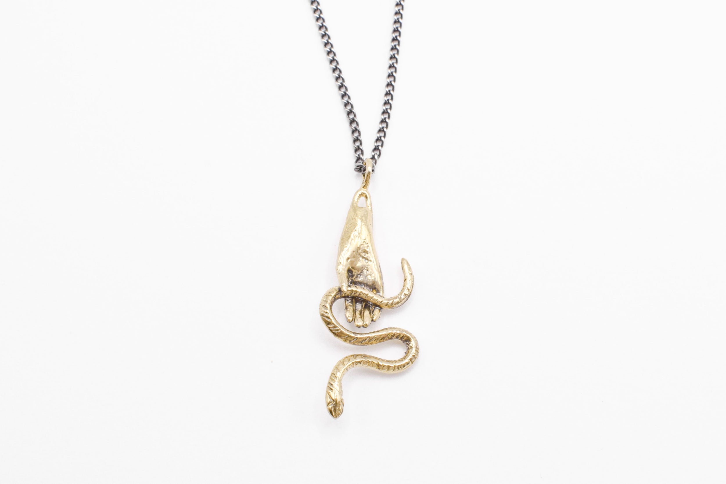 Hand & Snake necklace - brass on silver Hand & Snake necklace - brass on silver Hand & Snake necklace - brass on silver Hand & Snake necklace - brass on silver