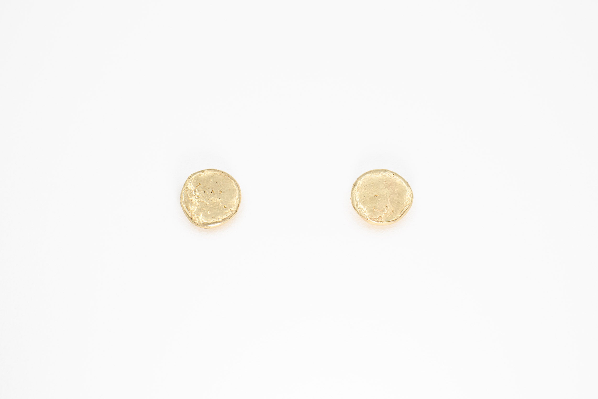 £200.00Simple, striking studs. Organically textured circle catches the light and reveals its ancient-textured surface at different angles. The circle suggests the sun, the moon, an eye, a coin - something precious to keep near you.