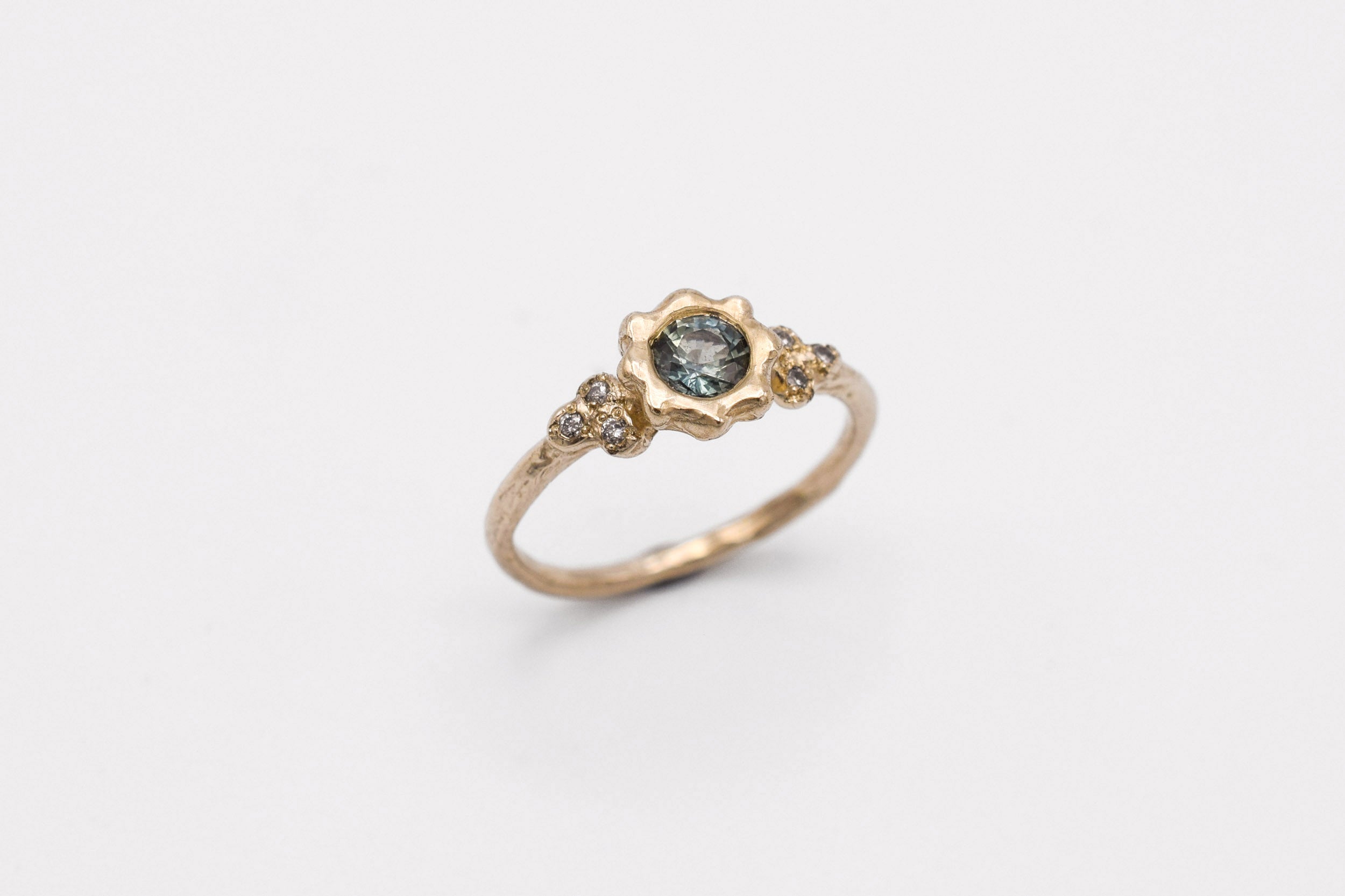 Elio Ring - 9k gold with Teal Sapphire & Diamonds - Ready to ship