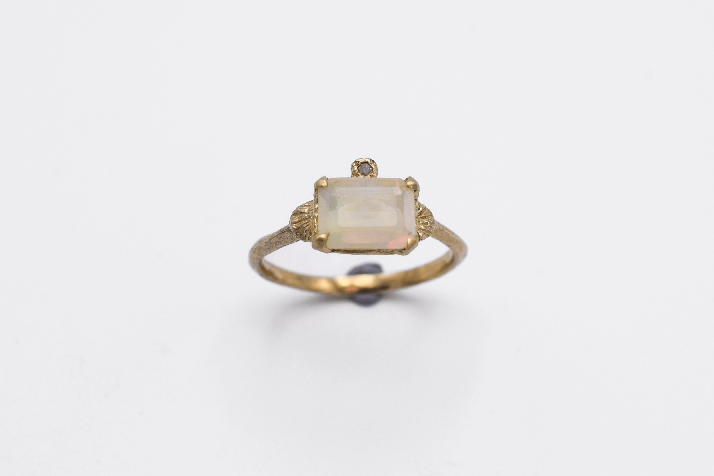 Julian ring - 10k gold with opal and salt and pepper diamond - Ready to Ship