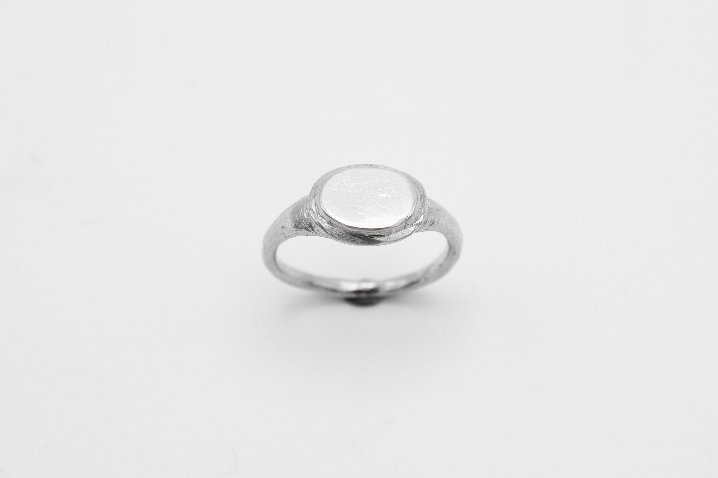 £90.00An ancient-inspired signet ring with a raised oval face, and slightly organic, textured finish.