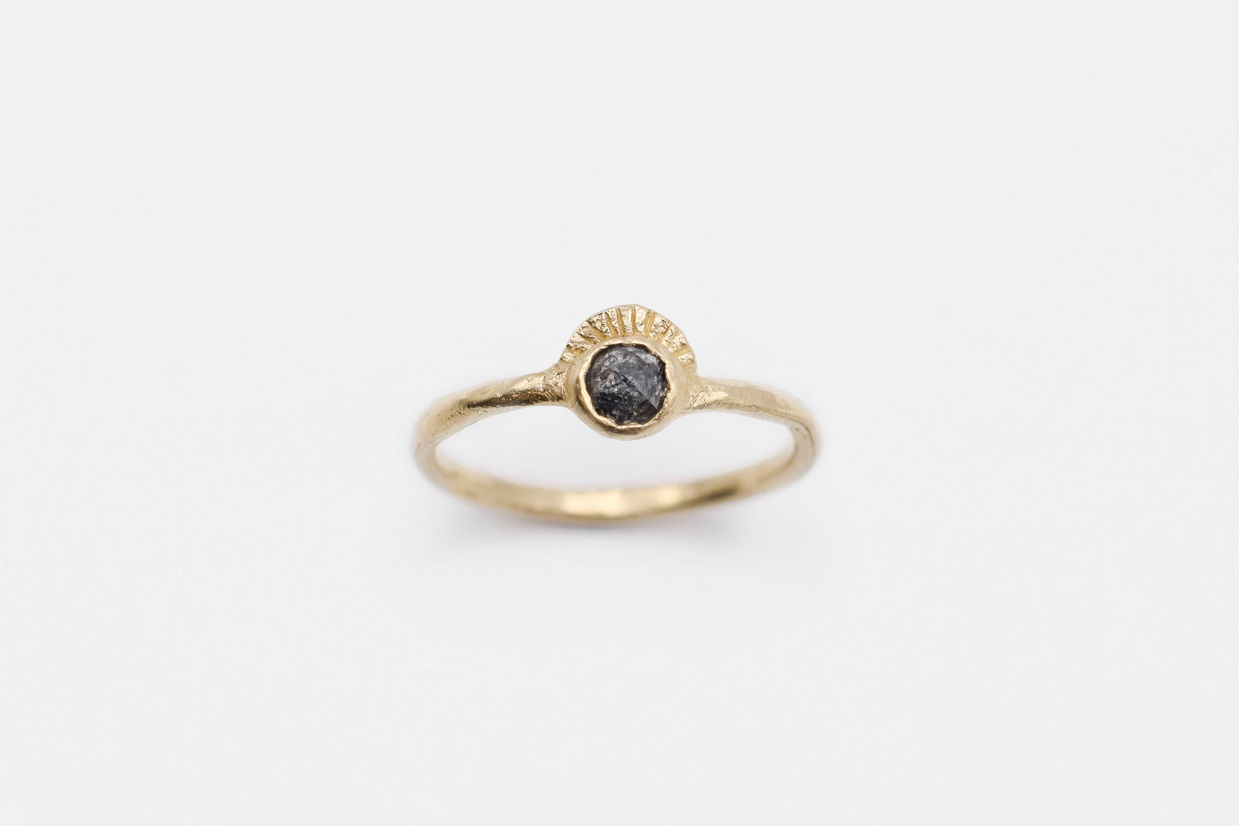 Fan Ring - 14k with dark salt & pepper diamond - READY TO SHIP