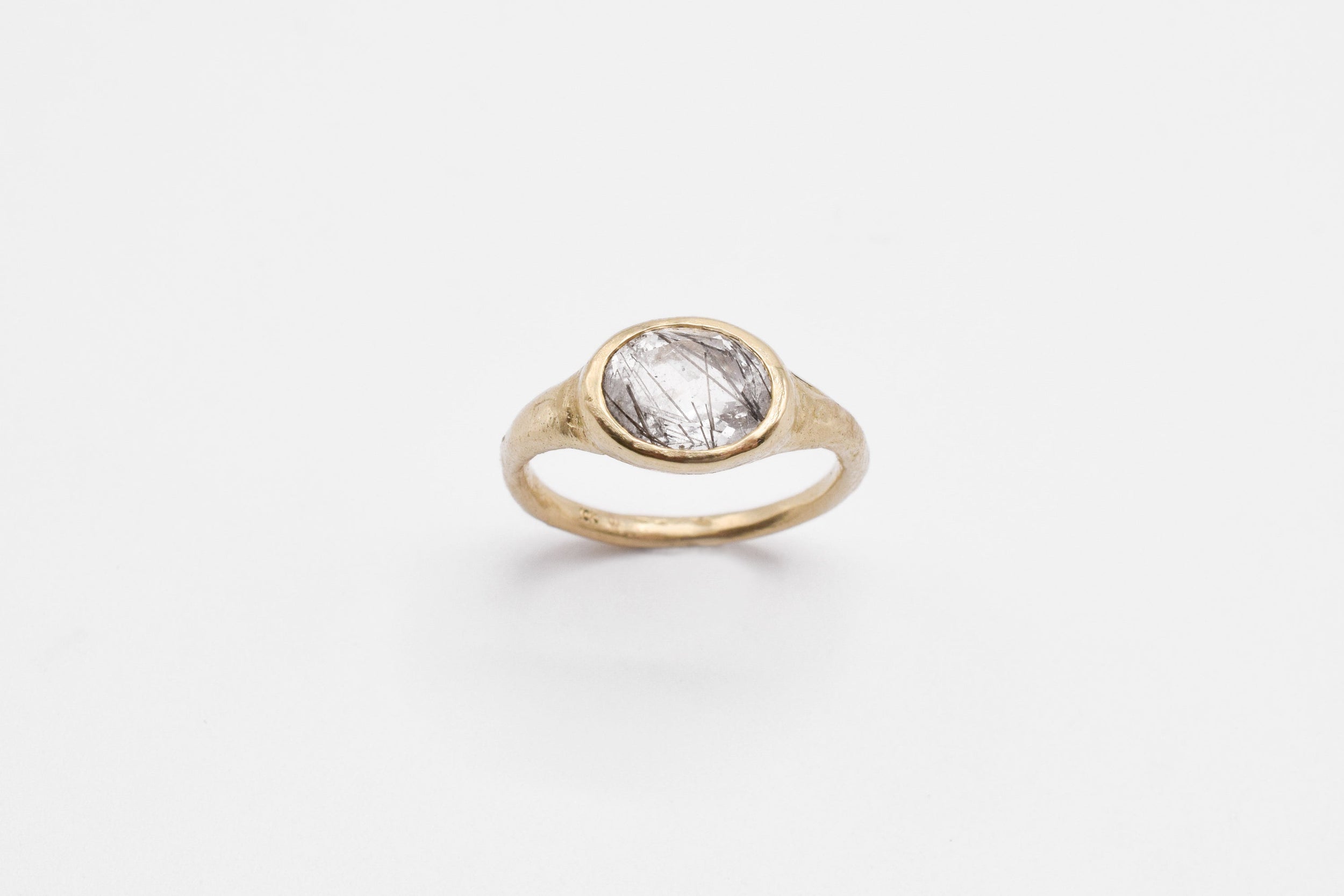 A classic signet shape ring, with tapering shoulders and a large rutilated quartz stone. Makes a beautiful alternative engagement ring, or an everyday ring.